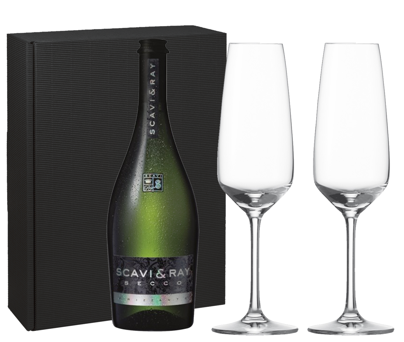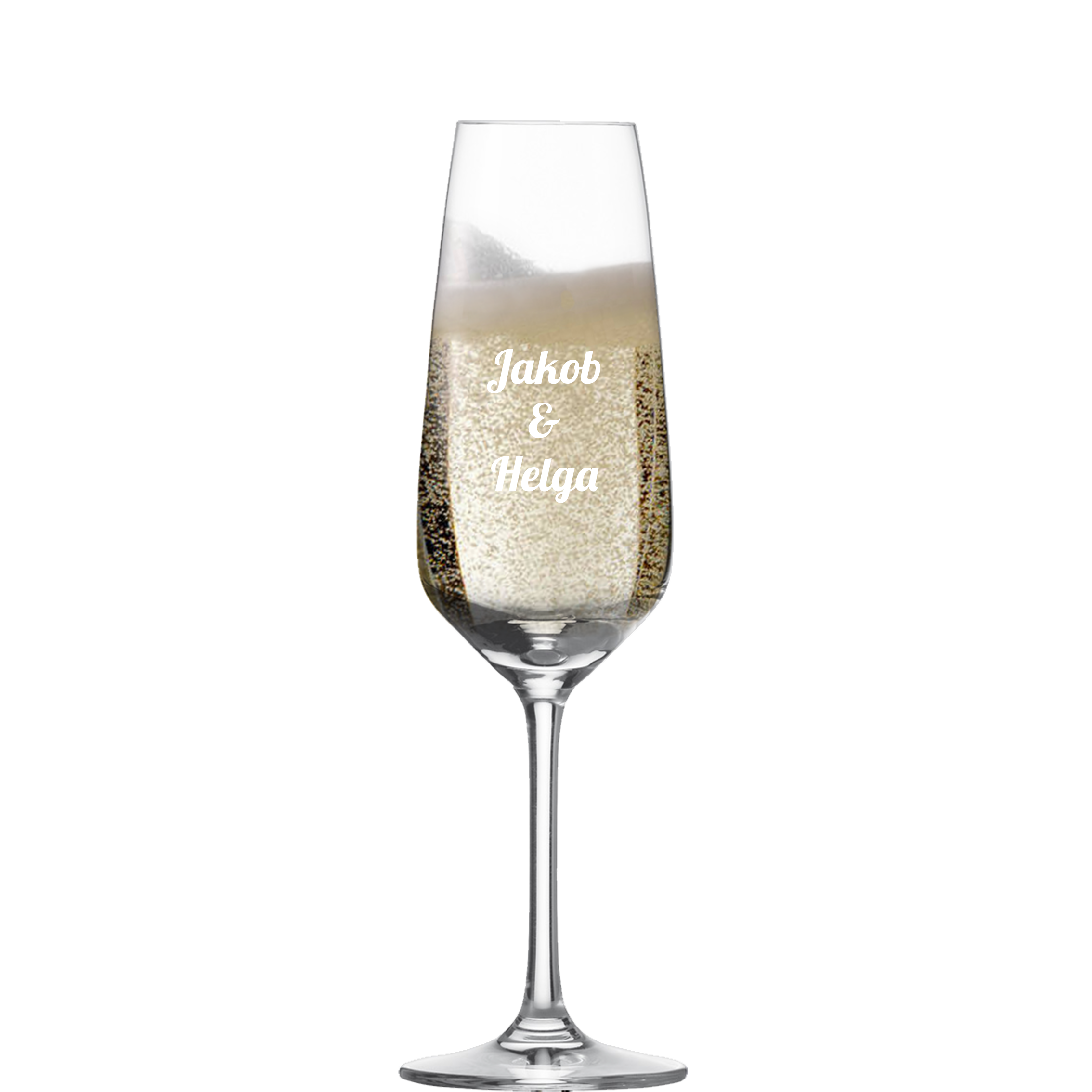 Das Set besteht aus zwei gravierten Sektgläsern der Serie Taste, inkl. einer Flasche Prosecco sowie einer passenden Geschenkverpackung.