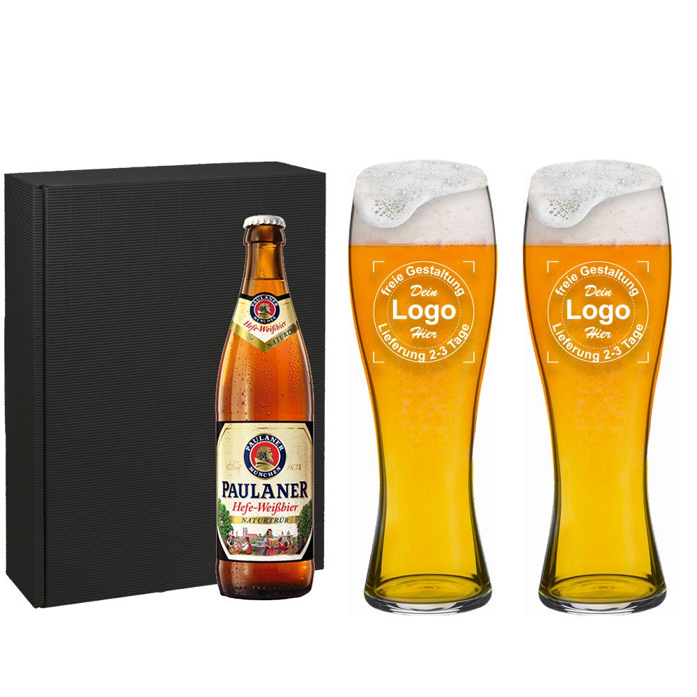 Das Set besteht aus zwei gravierten Weizenbiergläsern Spiegelau, inkl. einer Flasche Bier sowie einer passenden Geschenkverpackung.