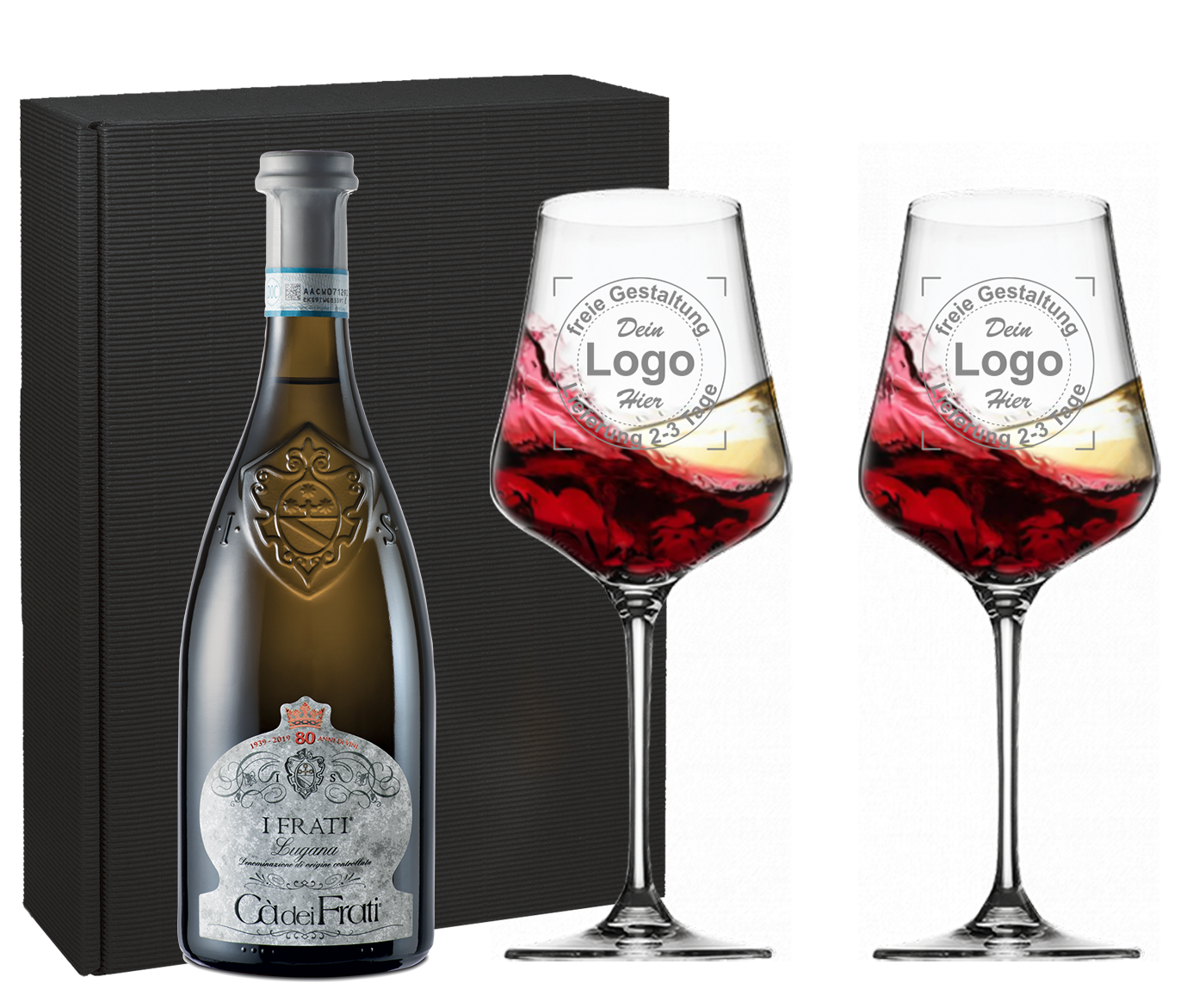 Ihr Branding können Sie in unserem Weinglas Set Designer selbst gestalten.