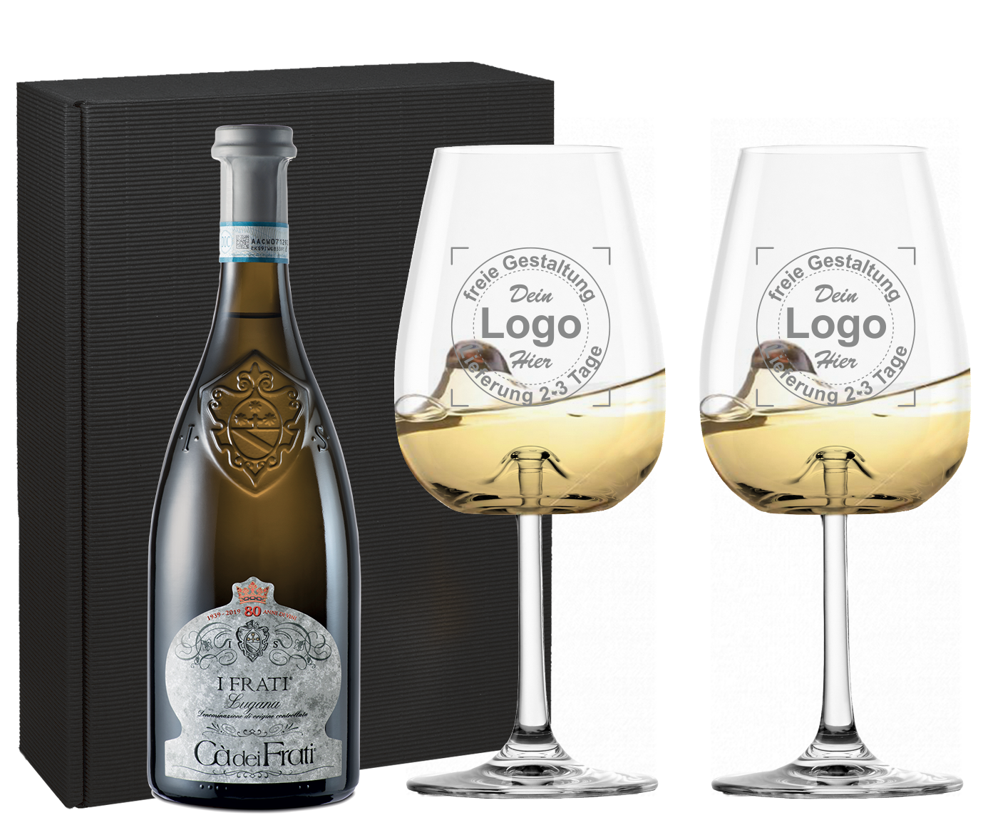 Ihr Branding können Sie in unserem Weinglas Set Designer selbst gestalten.