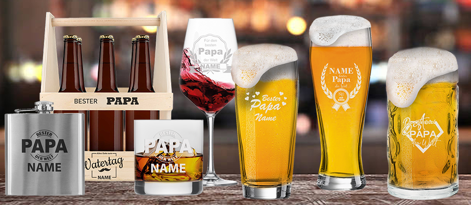 Du suchst das perfekte Geschenk zum Vatertag? Dann schau auf unsere Top-10. Unsere Biergläser, Maßkrüge und Geschenk-Sets werden für Begeisterung sorgen - alle Produkte sind personalisierbar.
