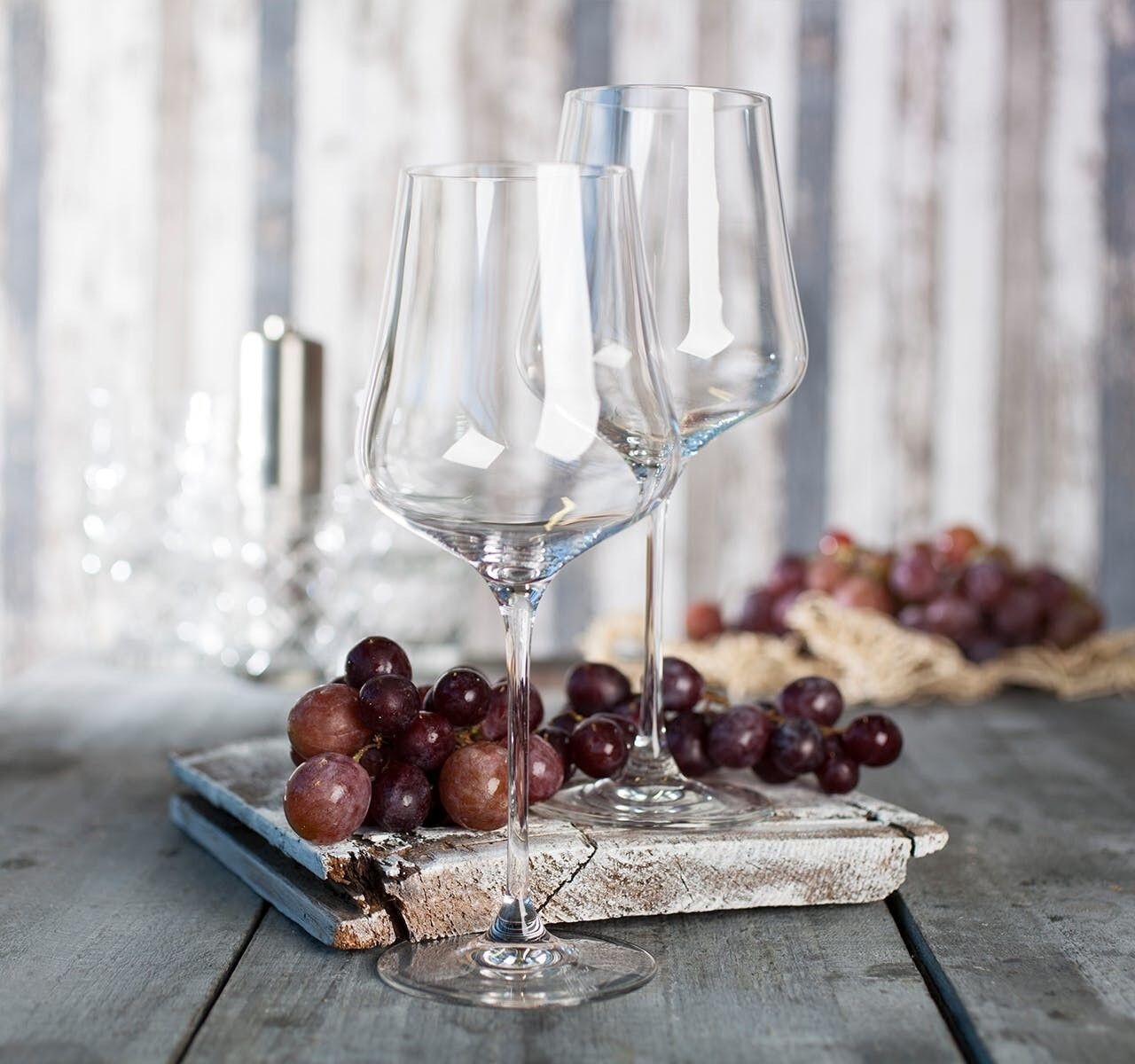 Die Glasform zwischen Bauch und Öffnung ist dezent konisch nach innen geschwungen. Das ermöglicht eine optimale Bündelung des Bouquets. Beim Trinken des Weines werden wieder die schwer flüchtigen Substanzen mit den leichteren Düften vermischt, weil diese wie bei einer Wellenbrechung beim Ansetzen überdreht werden. Dieses Phänomen ist bei einem bauchigen Glas nie möglich.