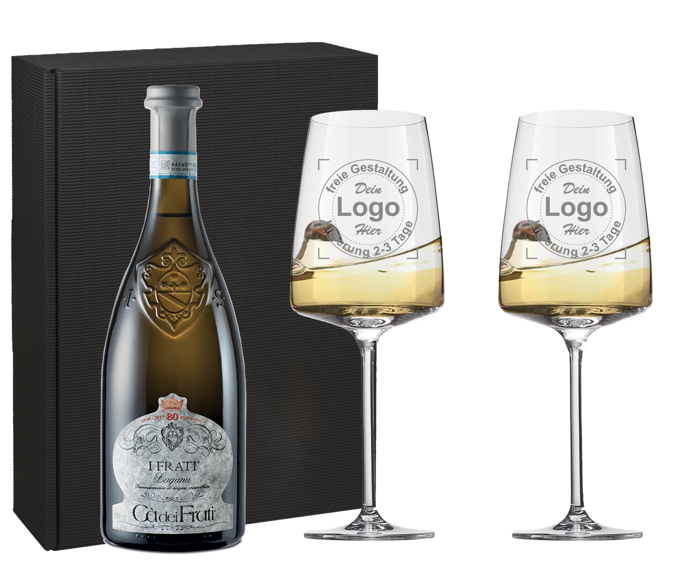 Ihr Branding können Sie in unserem Weinglas Set Designer selbst gestalten.